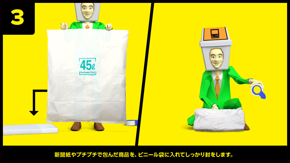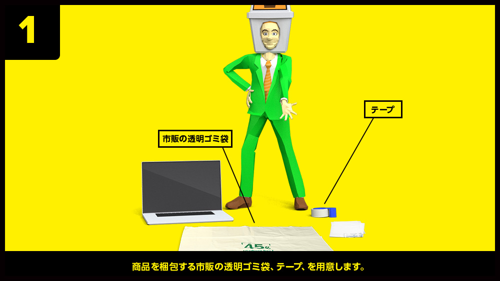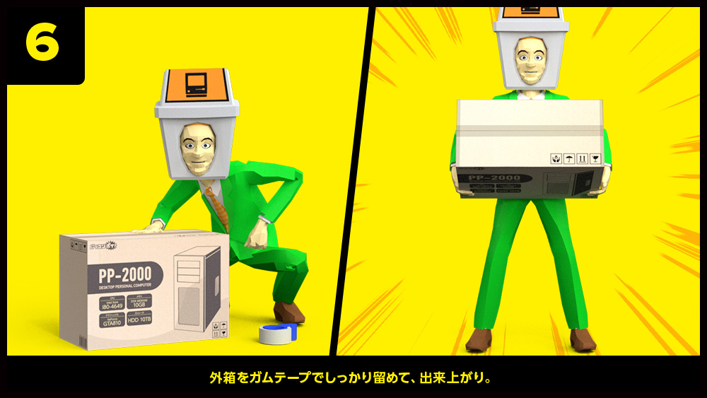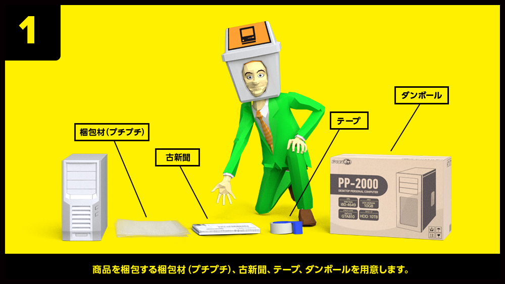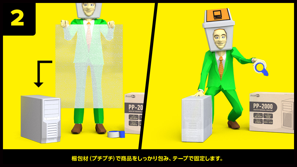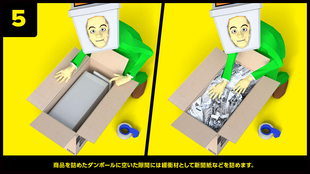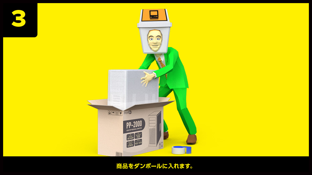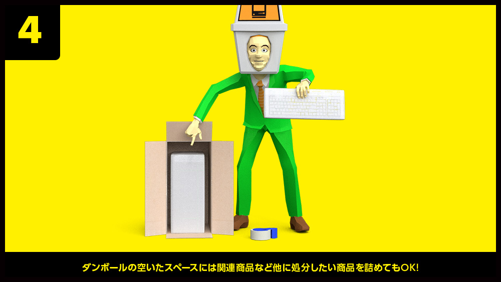 テープ廃棄依頼品の梱包・ダンボールの封をする。